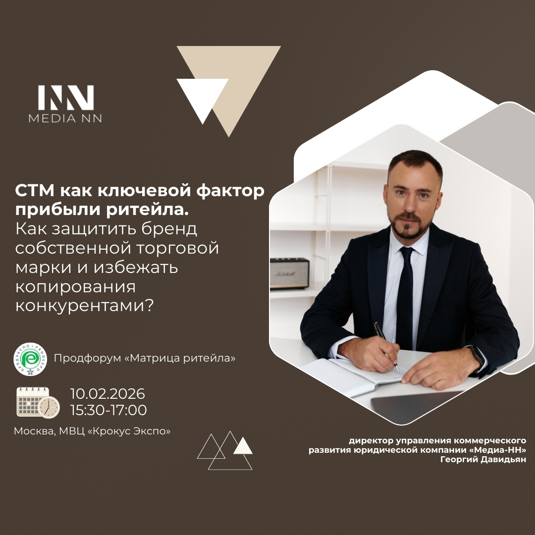 В рамках выставки «Продэкспо-2026» состоится выступление Георгия Давидьяна — директора управления коммерческого развития юридической компании «Медиа-НН», посвящённое одной из самых актуальных тем для современного ритейла — развитию и защите собственных торговых марок (СТМ).